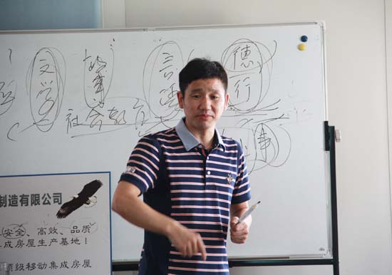 會(huì)議就家人們之間存(cún)在的溝通問題進行了分析與(yǔ)總結,並提出藝術溝(gōu)通更有利於構建和諧的企業。很多企業都存在著溝通不良(liáng)的毛病(bìng)。天(tiān)地集團(tuán)隨著人員的遞增,機構的細分,在溝(gōu)通方(fāng)麵也不可避免地出現了一(yī)些問題。為了(le)克服這一(yī)問題,董事長俞(yú)方偉特意趕來吳(wú)江生產基地,用切身實例向家人們講述藝術溝通的重要性。