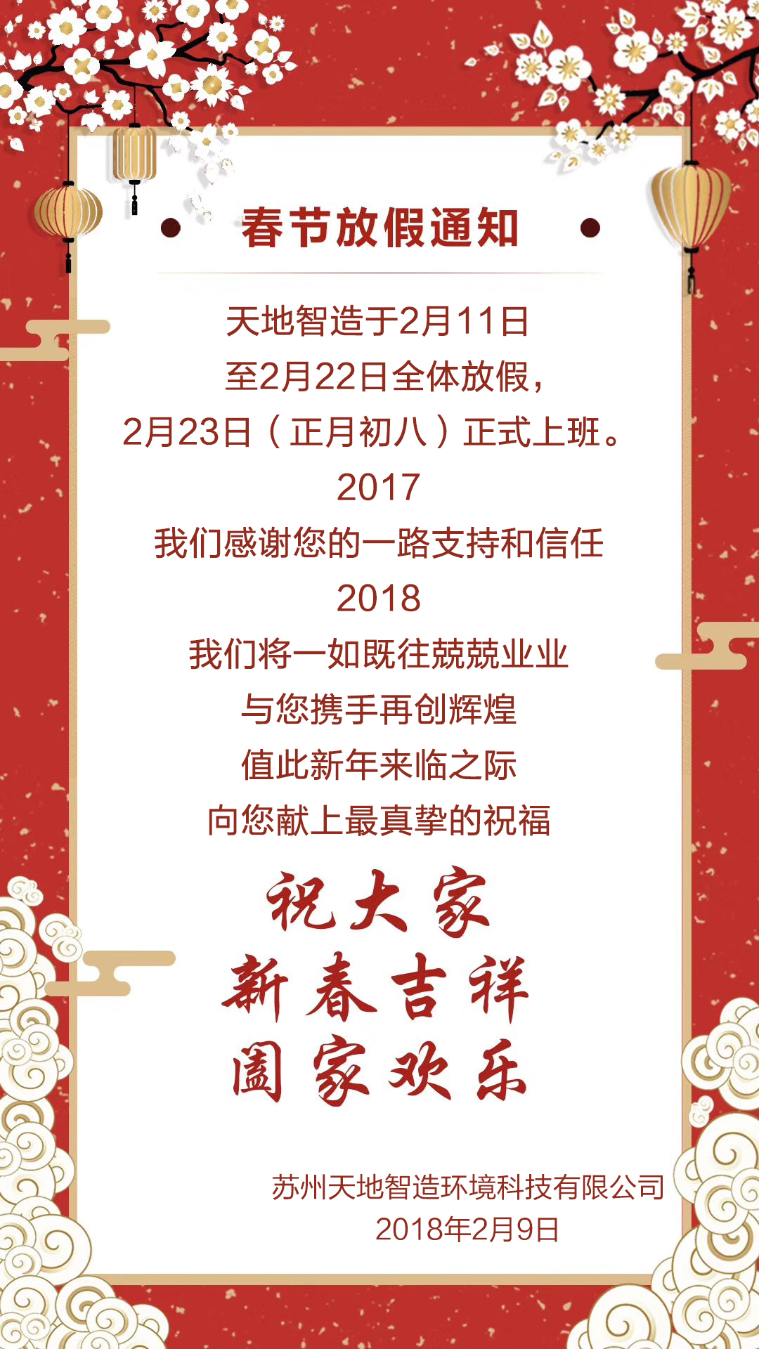 蘇州丝瓜视频官网於2月11日--2月22日全體放假,2月23日正式上班。