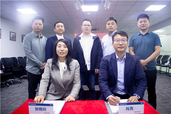 安易行總經理(lǐ)張(zhāng)豔玲與蘇州新中能源銷售&售後總監肖亮(liàng)代表雙方簽(qiān)約